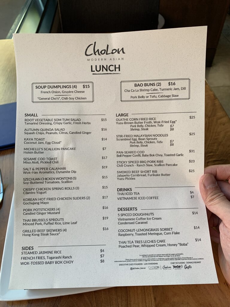 When I visited Denver, I was staying downtown, and a good friend of mine, Chris H., told me I had to stop by ChoLon to try the French Onion Soup Dumplings. I trust his taste in munchie foods, so I didn’t even do any research or look at pictures — I just went there for lunch.